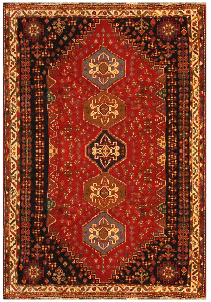 Shirazs are typically “nomadic” in design which means that there are many geometric and angular designs. The motifs are simple and executed in bold straight lines as well as bright colors. The most common motif and one by which a Shiraz may be identified is a diamond shaped lozenge by itself in the centre of the carpet or repeated along the length twice or three times according to the size.