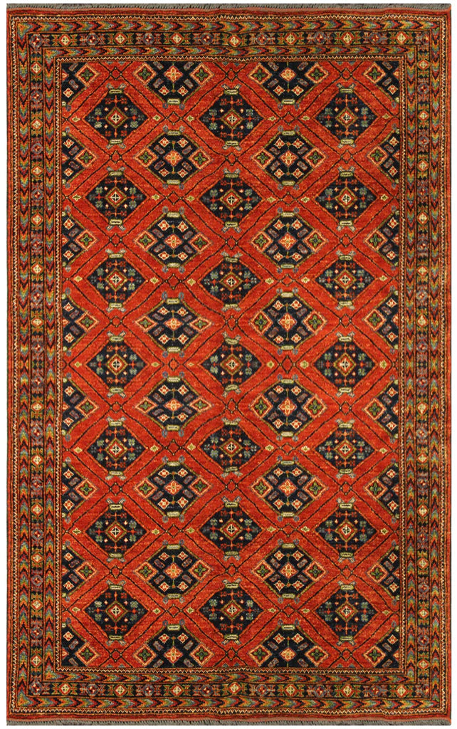 Khal Mohammad rugs are very strong and durable 100% wool rugs renowned for their workmanship, wool quality, and beautiful finish. There is some debate and confusion regarding the origin of Khal Mohammad rugs. Some claim that Khal Mohammad is a living Ersari Turkman in Northern Afghanistan who 30 years ago pioneered the structural quality, color tones, use of top quality materials and application of less common tribal designs that Khal Mohammad rugs all share. Others believe that Khal Mohammad lived about 150 years ago and was an expert dyer, and provided the unique color palettes that Khal Mohammad rugs possess. Still others believe that Khal Mohammad rugs were originally woven (and still are) by various Ersari Turkmen in Northern Afghanistan, not any single individual or workshop. What is generally agreed is that the rug style originates from Northern Afghanistan, near Mazar-i-Sharif or Ankhui. Today the term “Khal Mohammad” refers to the very fine quality Afghan rugs that share the same base characteristics of weave, colors, quality, and patterns.