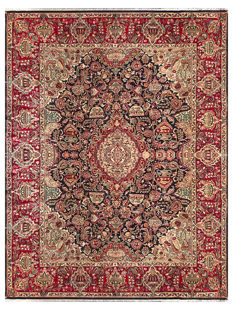 Mashads can be divided into two groups: Mashad and Mashad Turkish. Both of these kinds are woven on vertical looms which are mostly grouped in small craft centers. The warp and weft are in cotton and the number of knots per square inch varies from 100 to 200. The difference between these two groups lies in the knot: the Mashad uses the Persian knot and the Mashad Turkish, as the name implies, uses the Turkish knot.